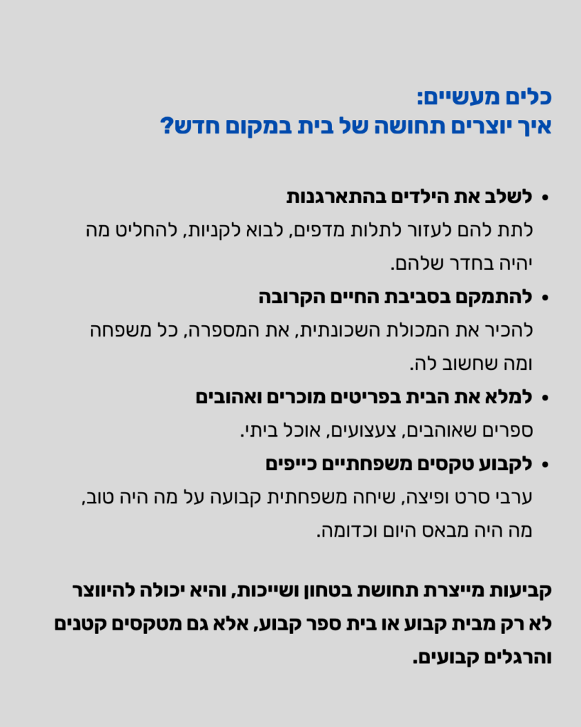 אפשר גם לשאול, 'איך הייתם רוצים שאני אהיה איתכם בימים המורכבים האלו? תעדיפו שאני אתקשר לשאול אם אתם בסדר אחרי אזעקה? או שזה דווקא מכביד או מציק ותעדיפו שלא?' כמה שיותר לבטא את הצרכים, אחד בפני השני."