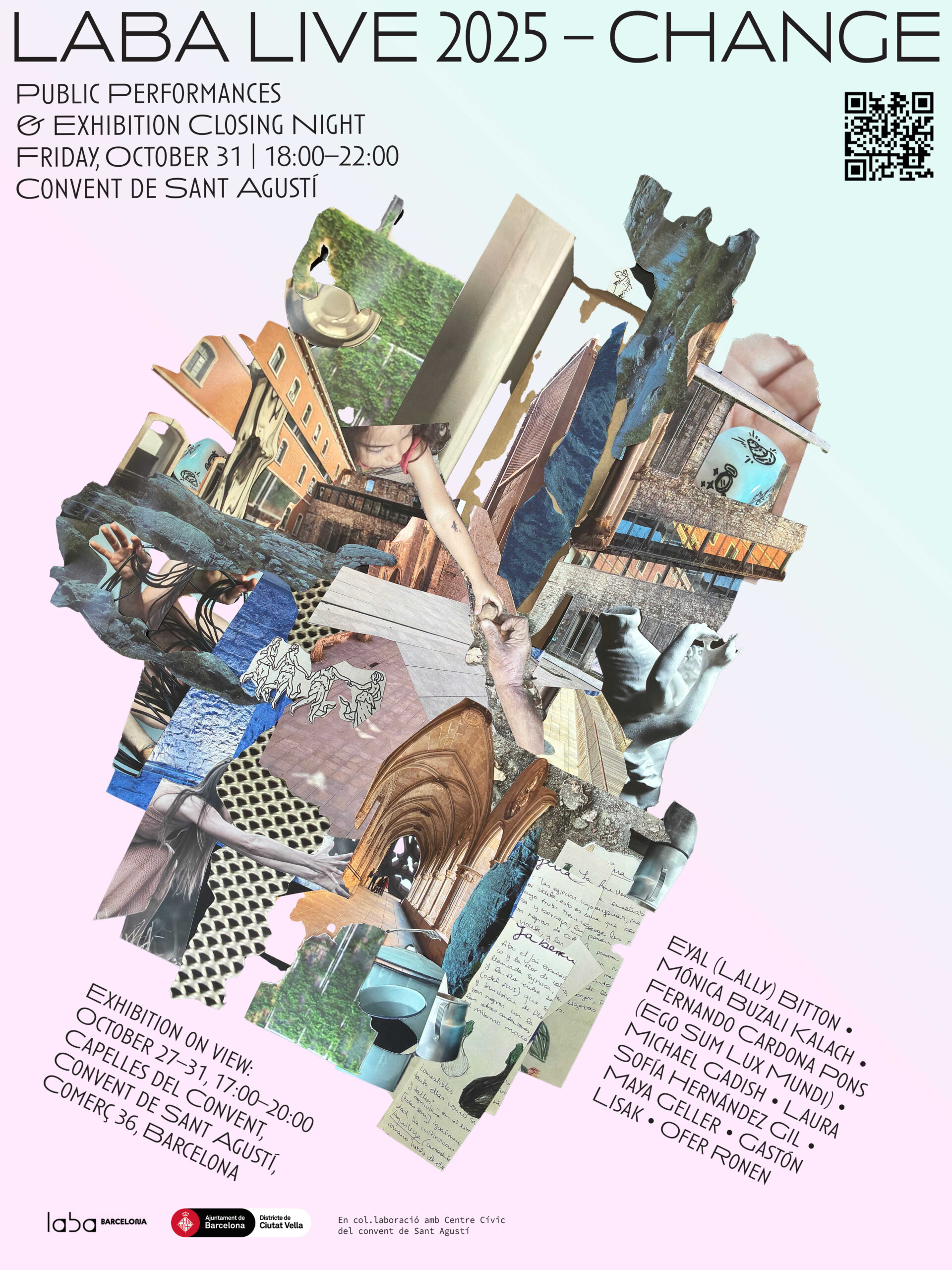 היום יתקיים אירוע הסיום של LABA ברצלונה. בתערוכה תוכלו לראות, בין היתר, כיצד מתרגמת תמת השינוי ליצירה – אייל (ללי) ביטון יציג את עבודתו בה הוא מחפש אחר הקול האלוהי, דרך חוקה אודיו ויזואלית רב חושית, אל בוזלי קלאך תוכלו להצטרף למיצג תיאטרלי המזמין ליצירת מרחב משותף העוסק בזכרון ותיקון, פרננדו קרדונה פונס – מפעיל את חלל התצוגה כעמדת קעקועים המעבדים את המורשת הטקסטואלית והסמלית היהודית, מאיה גלר בסרט קצר המביא מפגש בין ילדה וגנן ועוסק במתח בין גלות והשתרשות, והיכולת לצמוח גם באדמה זרה, לאורה סופיה הרננדס גיל, תציג פרפורמנס תנועה תיאטרלי בחצר המנזר הדרמטית. תחת נושא שנת השמיטה המקראית, גסטון ליסאק יביא את עבודת הארכיאולוגיה המומצאת שיצר בשיתוף הבינה המלאכותית, פסלים – אמונה ומיתוסים המתרגמים לאובייקטים. גדיש ורונן יזמינו אותנו להופעה חיה -להרגיש את היצירה, המוזיקה והשינוי, כאקט של התנגדות לייאוש. כחיים עצמם.