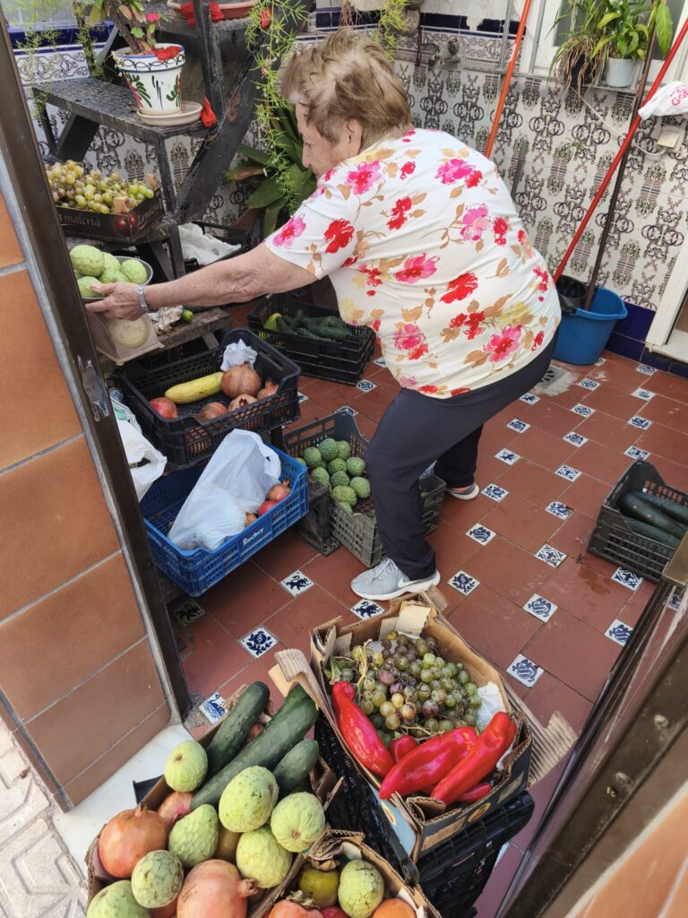 אני מנסה להספיק לפני השעה 14:00 לעבור עם האופנוע בין הסמטאות, לזהות דלת פתוחה עם מרכולת המוצעת לצד משקל קטן וישן. הסבתות יציעו למכירה במחיר 1,5€ לקילו את השפע מגינת הירק, שנקטפה אך הבוקר.