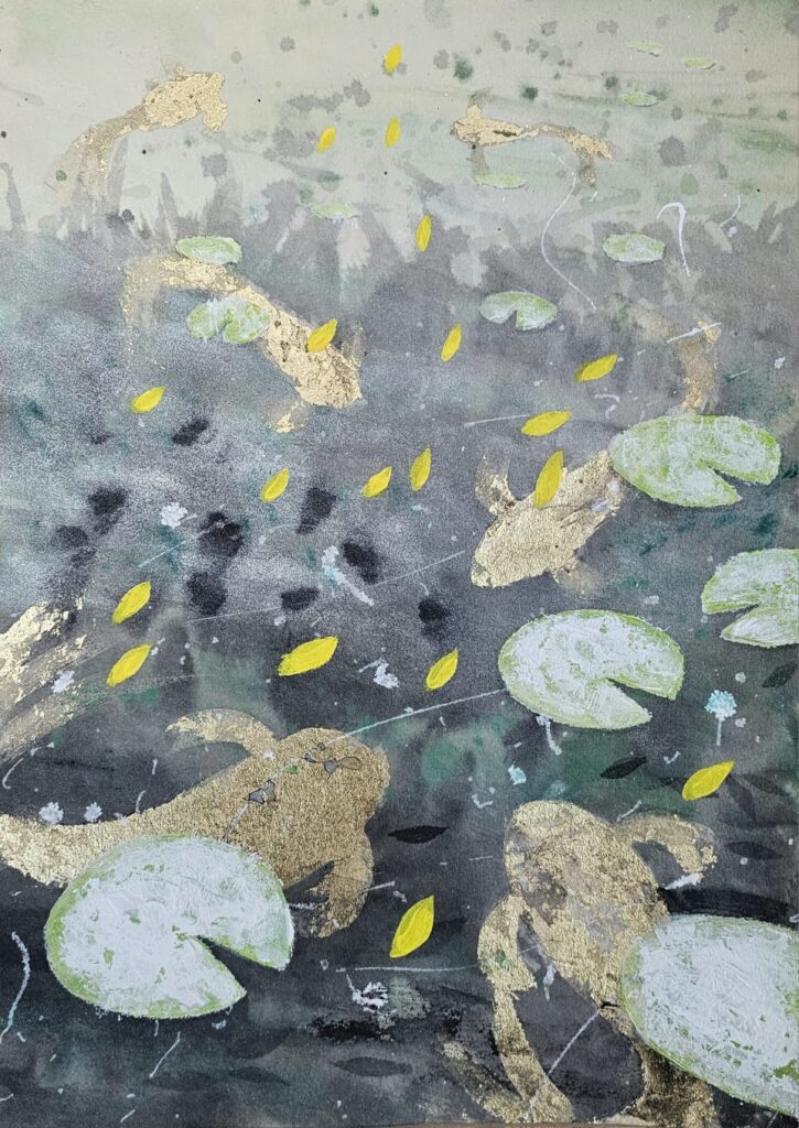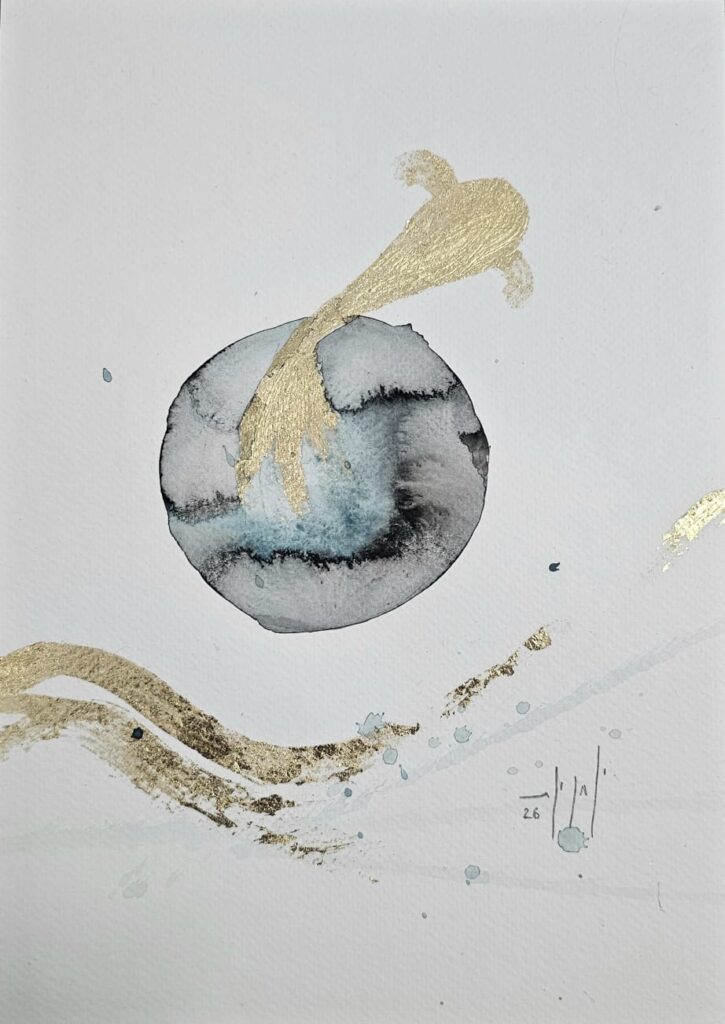 כאמנית ואדריכלית, רינת בונה את עבודותיה כ15-20 שכבות דקות ועדינות היוצרות עומק ותנועה פנימית. המים שבציור מהדהדים את המים שבתוכנו – את הכובד, את הרגש, ואת האפשרות להשתנות.