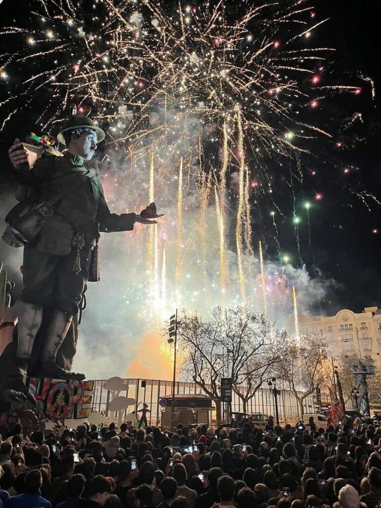 אחד הרגעים הזכורים לי במיוחד היה בזמן המאסקלטה (Mascletà), מופע הנפצים המסורתי שמתקיים מדי יום בצהריים, בכיכר Plaza del Ayuntamiento. עמדתי בתוך ההמון, מוקפת באלפי אנשים, כשברגע אחד השקט היחסי התחלף בסדרת פיצוצים עוצמתית. הפיצוצים אינם דומים לזיקוקים רגילים זו חוויה שמורגשת בכל הגוף. האוויר רועד, האדמה כמעט רוטטת מתחת לרגליים, וקצב הפיצוצים הולך ומתגבר כמו מעין תזמורת של רעש. בהתחלה נבהלתי. אבל אחרי כמה רגעים פשוט נסחפתי עם הקהל. כולם מרימים את הראש, מחייכים ומריעים יחד בסיום.