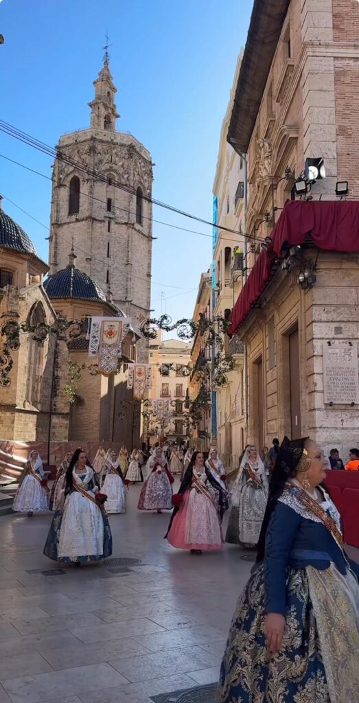 כך למשל בטקס La Ofrenda a la Virgen de los Desamparados, שבו צועדות ברחובות אלפי פאיירות בלבוש מסורתי, בתהלוכה חגיגית, מביאות פרחים ומרכיבות מהם שטיח פרחוני ענק, לכבודה של Virgin of the Forsaken. המראה של משפחות שלמות צועדות יחד הורים, ילדים וסבים, מזכיר עד כמה החג הזה נטוע עמוק בחיי הקהילה והמשפחה.