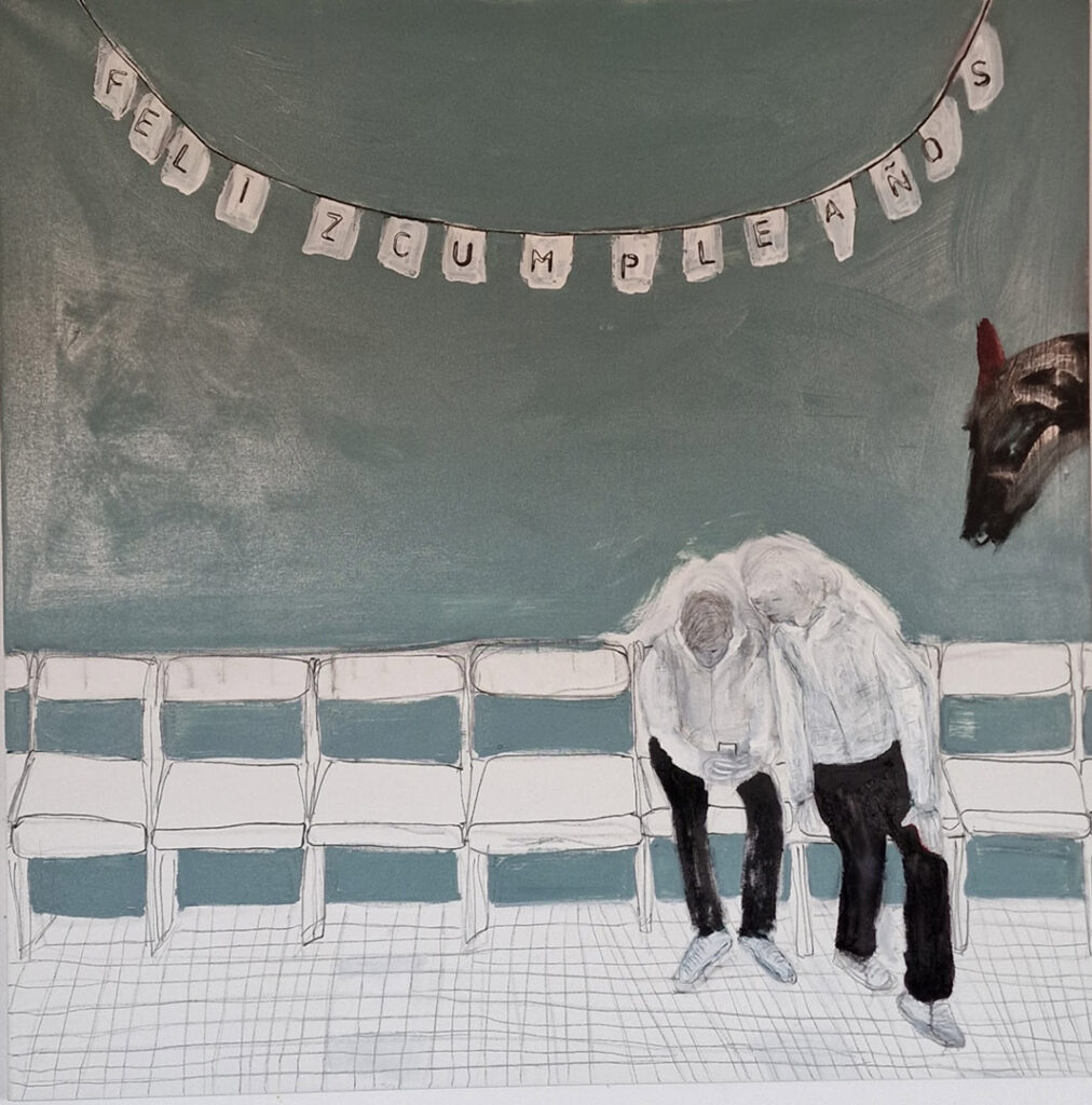 עבודותיה המוצגות כאן, משקפות את מבטה החד על מדריד. הם הזכירו לנו צילום רחוב, יותר מאשר ציור במובנו הקלאסי.