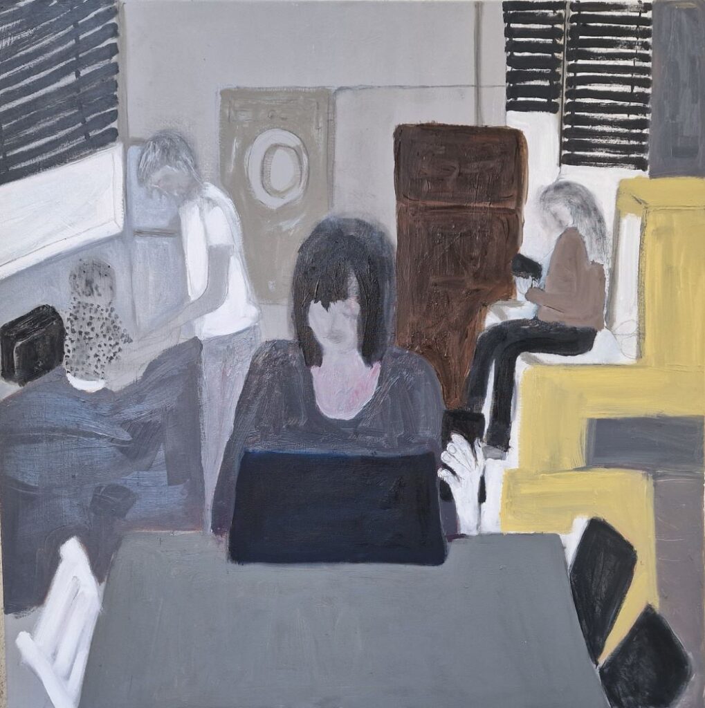 אלו ציורים שנראים כמו סנאפ־שוטס: הבזקי חיים קטנים שנתפסים ברגעי ביניים, כשהעיר והאנשים שבתוכה ממתינים למשהו, או בדרך לאנשהו.